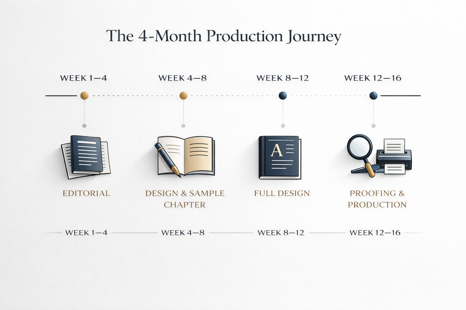 When you start working with a dedicated team—an editor who understands founder narratives, a designer who's built books for executives, a project manager keeping all the pieces coordinated—you're entering what we call boutique production. This is where most ambitious founders land.